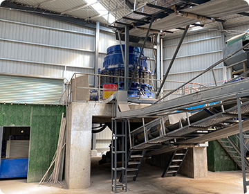 篩分階段:破碎后的物料經(jīng)過圓振動篩進行分級,符合規(guī)格的由成品皮帶送至成品料堆,不符合規(guī)格的由返料皮帶送回到破碎機中再次進行破碎,形成閉路循環(huán)。